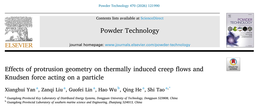 2023级能源动力研究生严祥晖以第一作者在国际知名期刊《Powder Technology》上发表题为“Effects of protrusion geometry on thermally induced creep flows and Knudsen force acting on a particle”的创新研究成果,陶实副教授为通讯作者,av在线