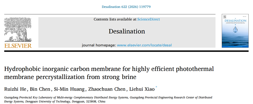 2023级能源动力研究生何睿智以第一作者在国际著名期刊《Desalination》上发表题为“Hydrophobic inorganic carbon membrane for highly efficient photothermal membrane percrystalline from strong brine”的创新研究成果,肖烈晖副教授为通讯作者,av在线